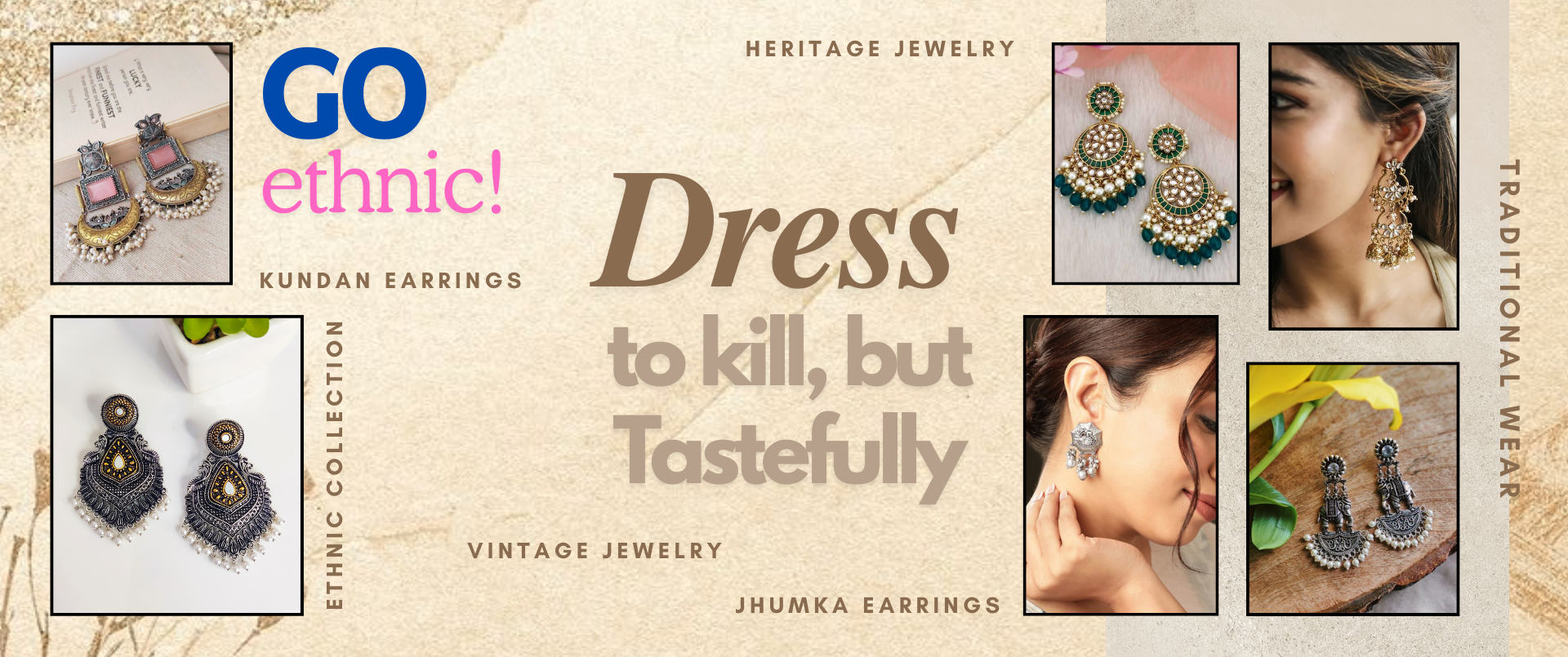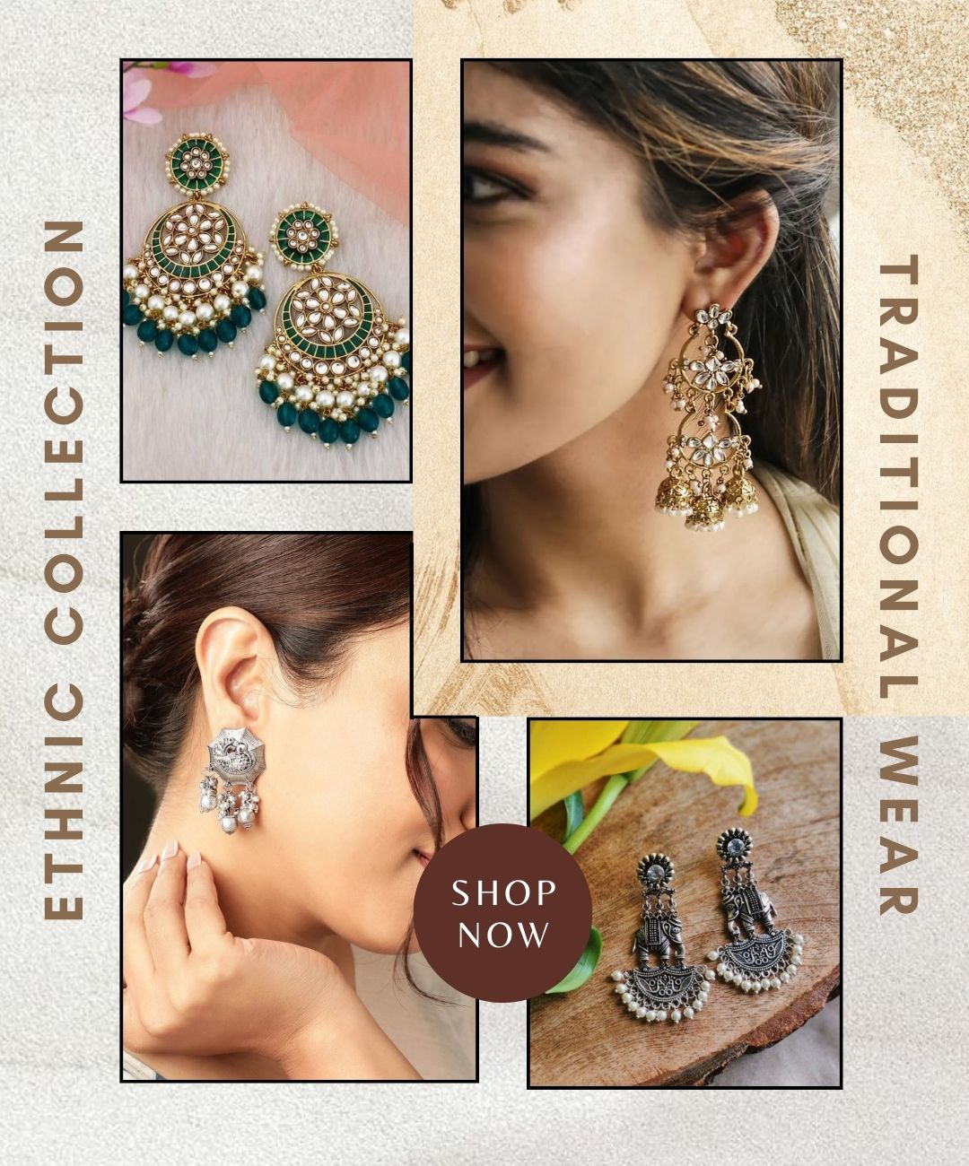 Traditional Style Oxidized Earrings With Blue Color Beads