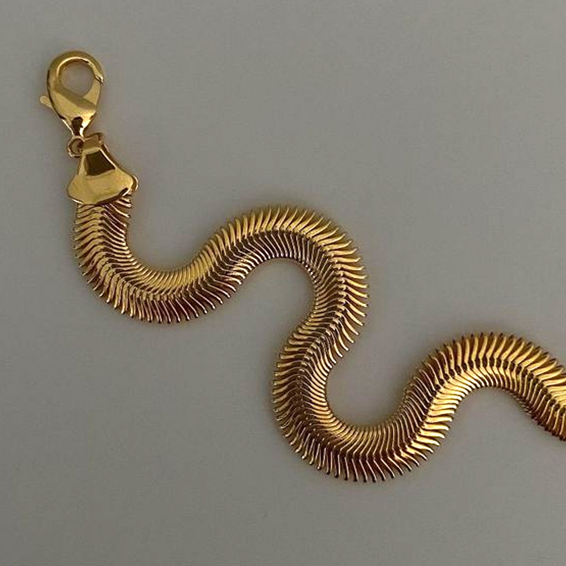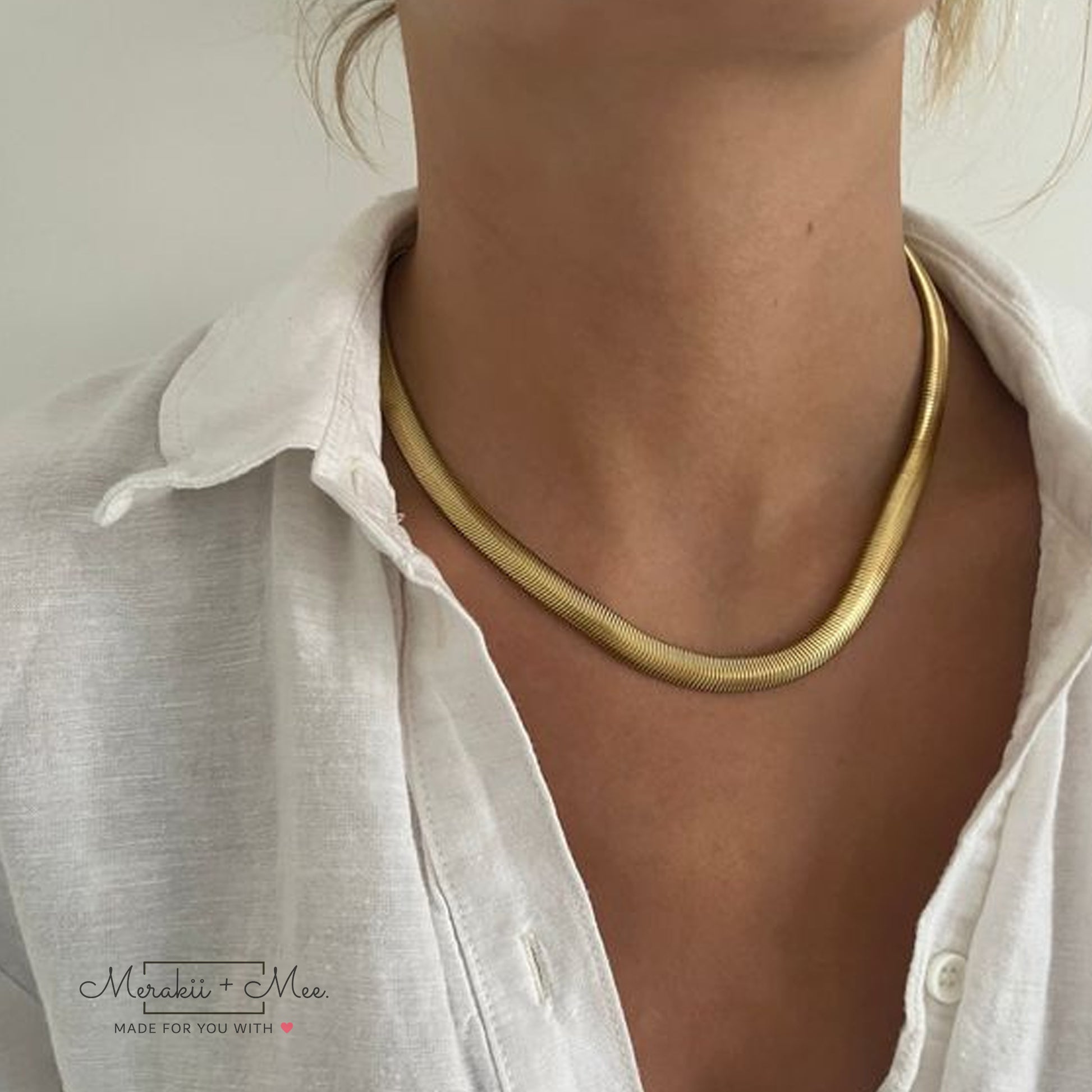 Upgrade your jewelry game with the Liquid Gold Snake Chain Necklace. The unique snake chain design is sure to catch eyes and boost your style factor. Made with high-quality materials, this necklace adds a touch of luxury to any outfit. Elevate your look with Liquid Gold.